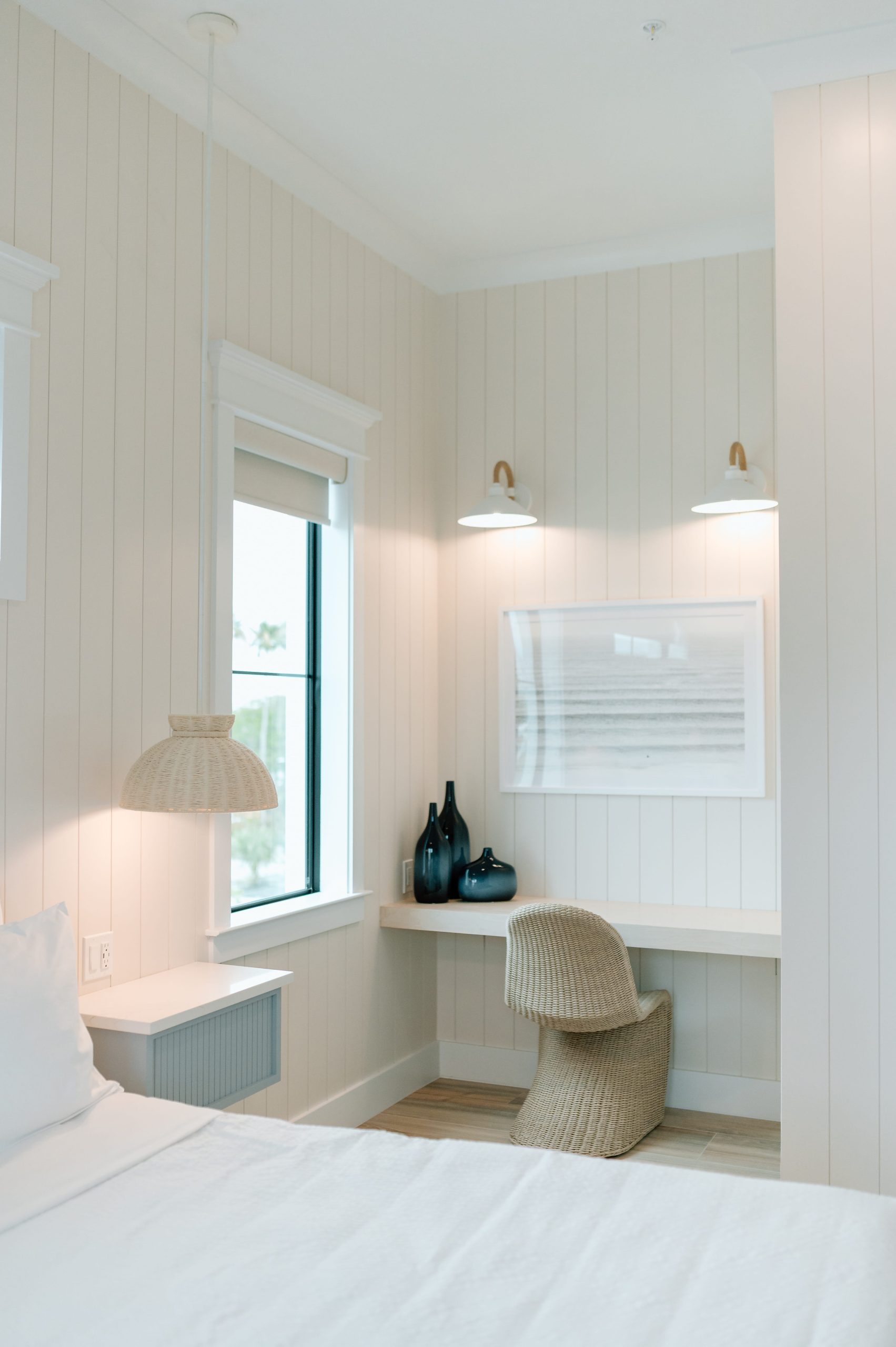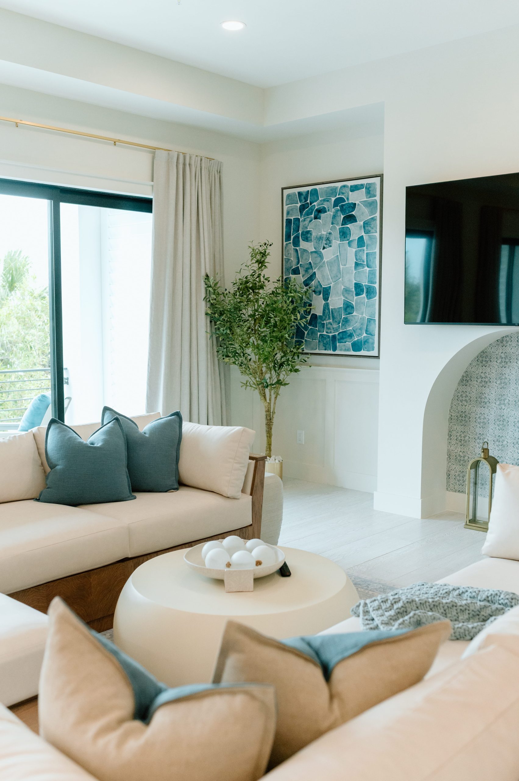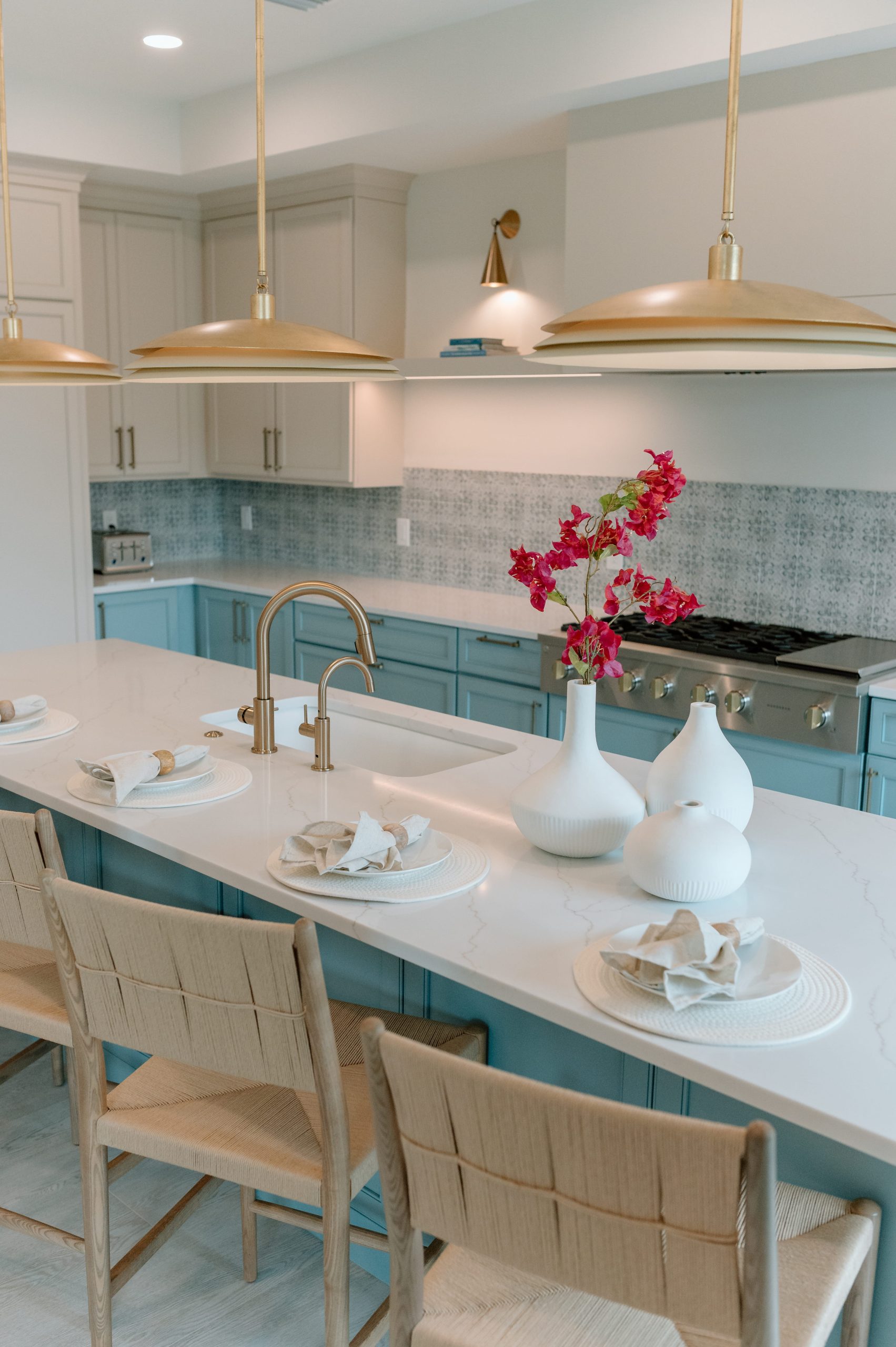 Rooted in light, landscape, and everyday connection, The Esplanade Residences offers a refined expression of modern coastal living. Comprising three thoughtfully designed townhomes, the interiors balance soft whites and creamy neutrals with hints of seagrass green and ocean blue, creating a palette that feels serene and welcoming. Warm natural wood tones—seen in light oak flooring, white oak ceilings, and custom furniture detailing—add depth and continuity throughout. Textured wallcoverings, patterned tile, and coastal-inspired ceramics introduce layers of tactility, while sculptural, ambient lighting enhances the home’s relaxed yet refined atmosphere. The result is a breezy, family-centered retreat that captures contemporary coastal living with ease and sophistication.