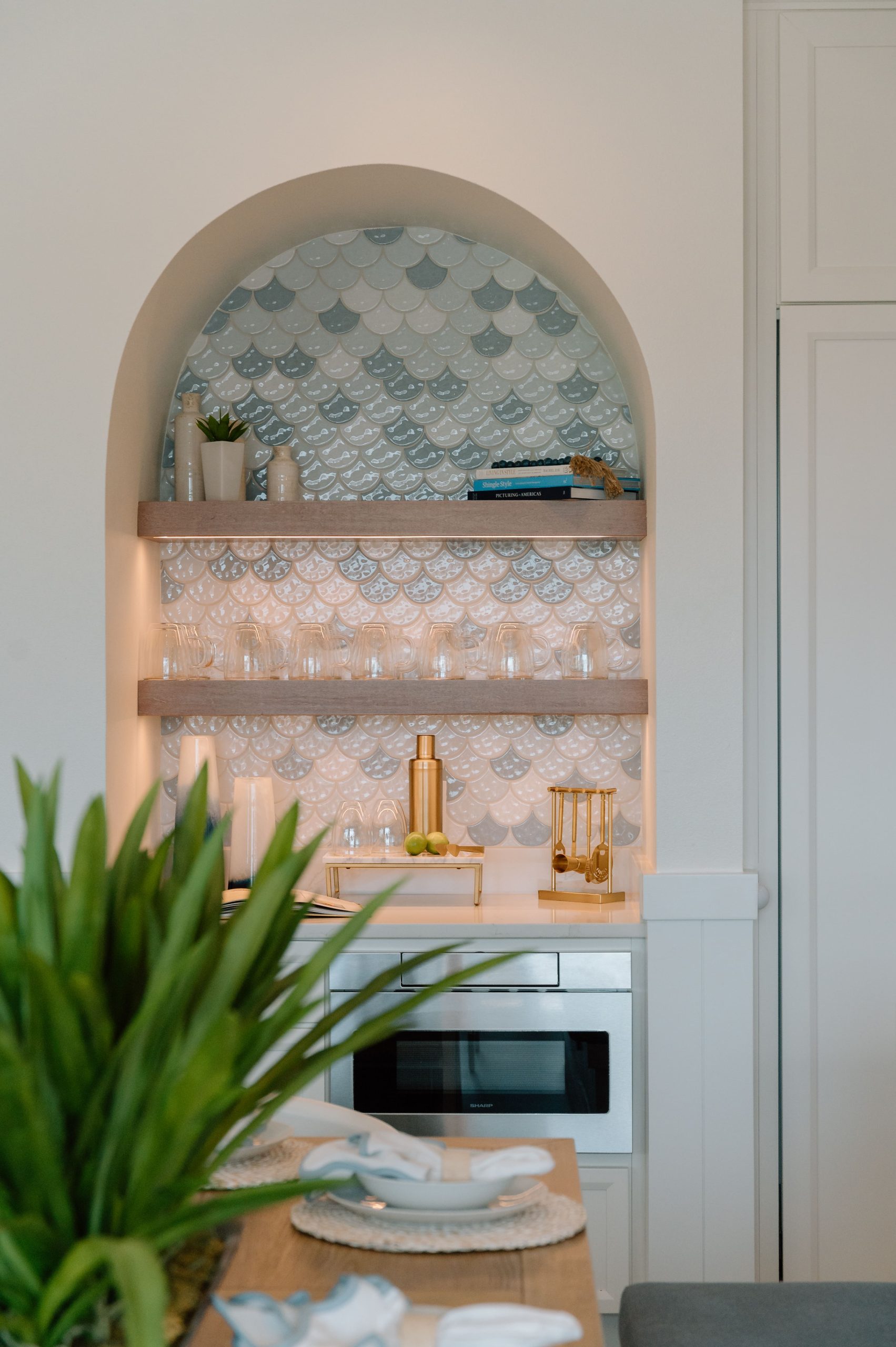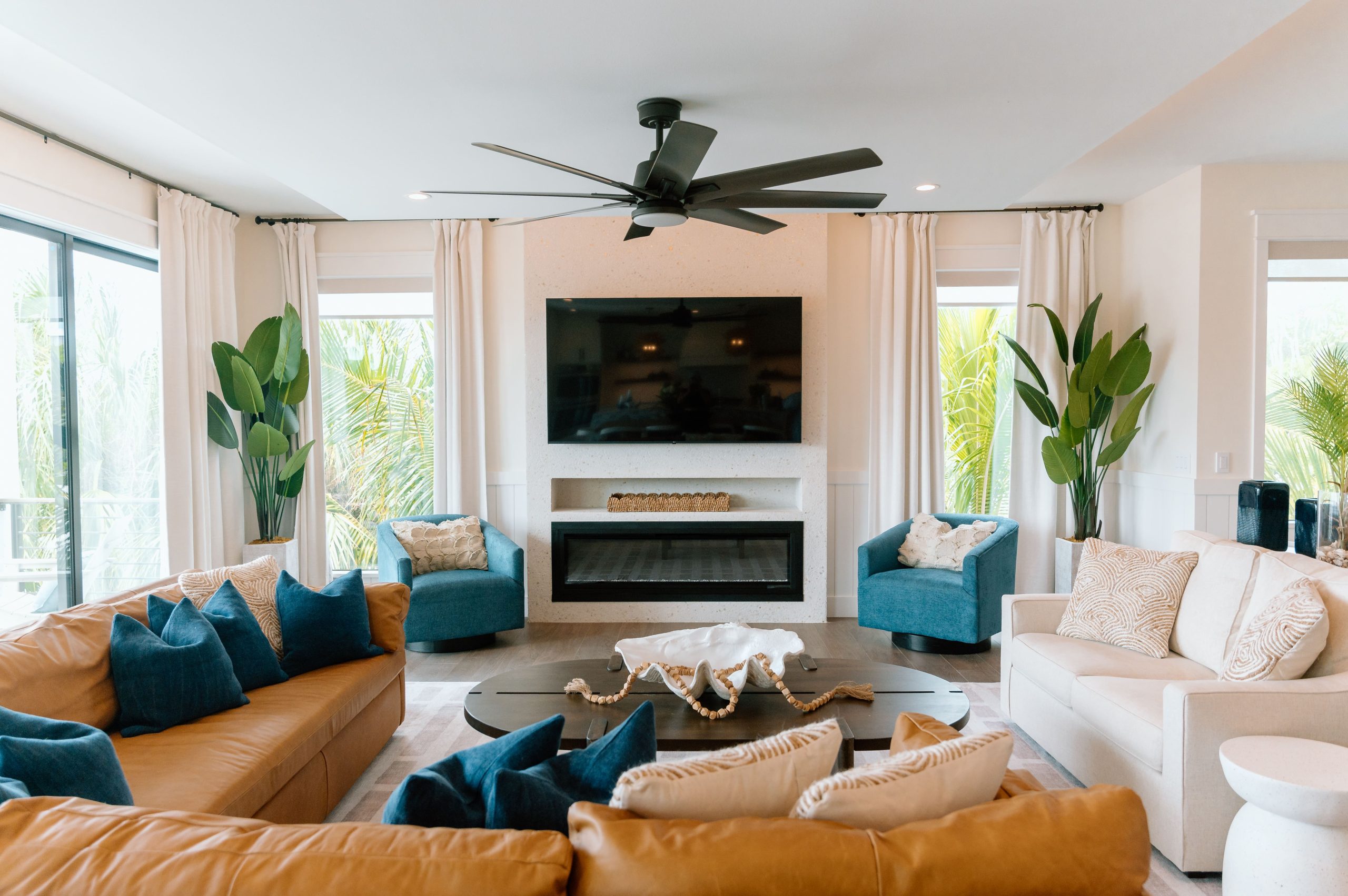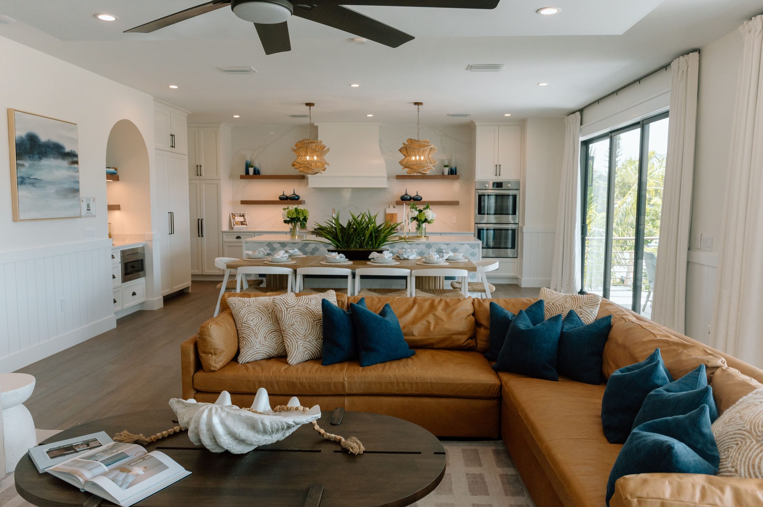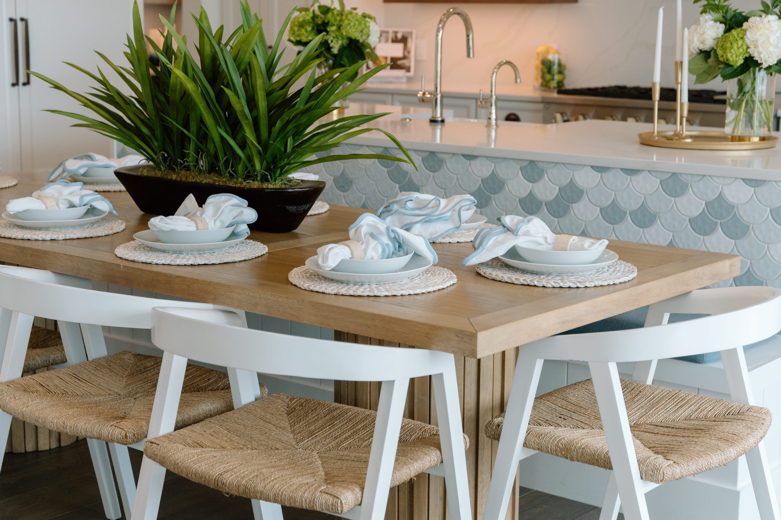 Rooted in natural elegance and ease, Seascape offers a fresh, contemporary take on coastal living. Soft whites and sandy neutrals create a light, inviting foundation, layered with ocean-inspired blues and aquas that echo the surrounding shoreline. Light oak and natural wood finishes introduce warmth and continuity, while rattan and woven fibers add texture and a relaxed, tactile quality throughout. Transitional in spirit with subtle modern touches, the interiors feel timeless yet current—resulting in a serene seaside retreat shaped by light, comfort, and understated coastal sophistication.