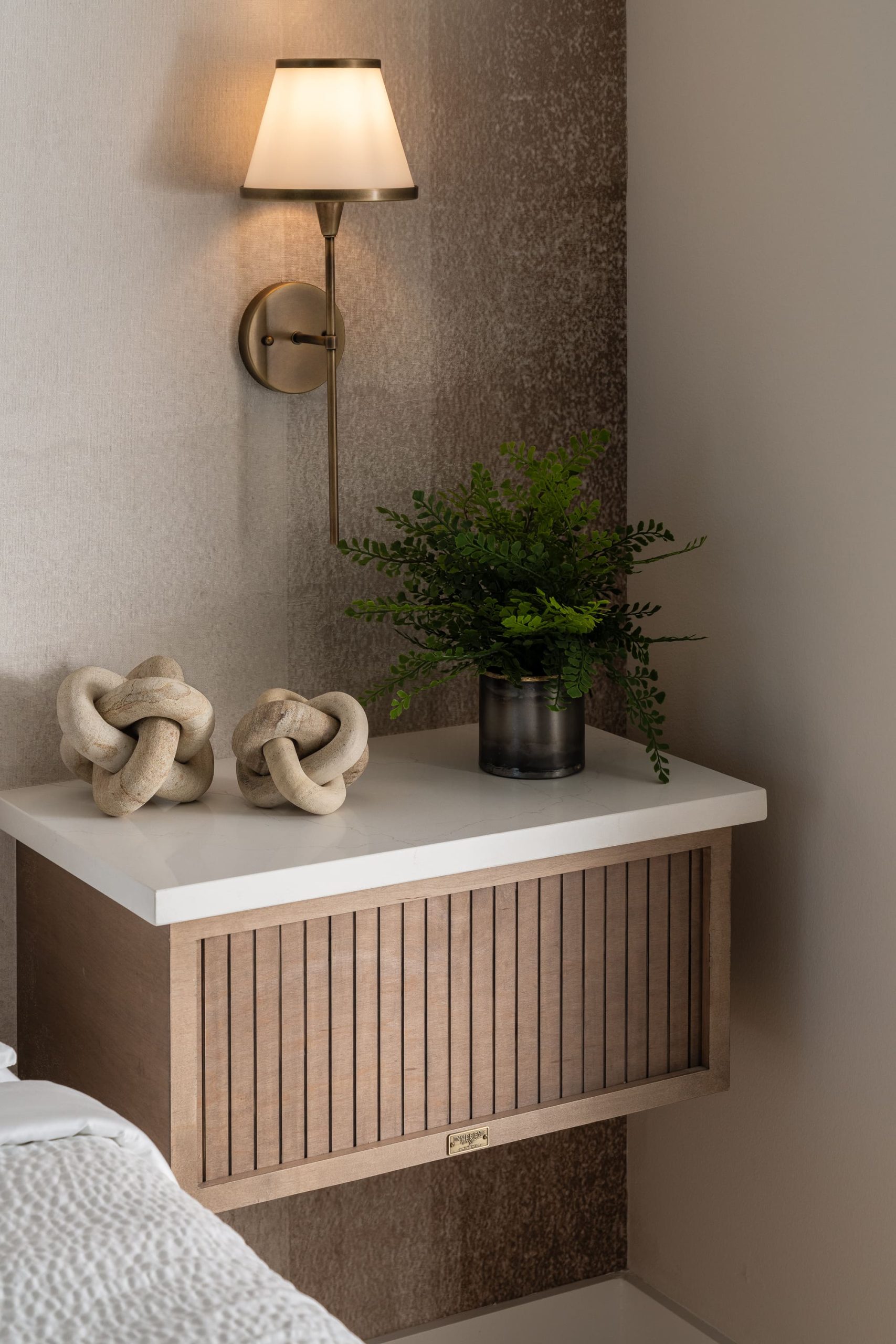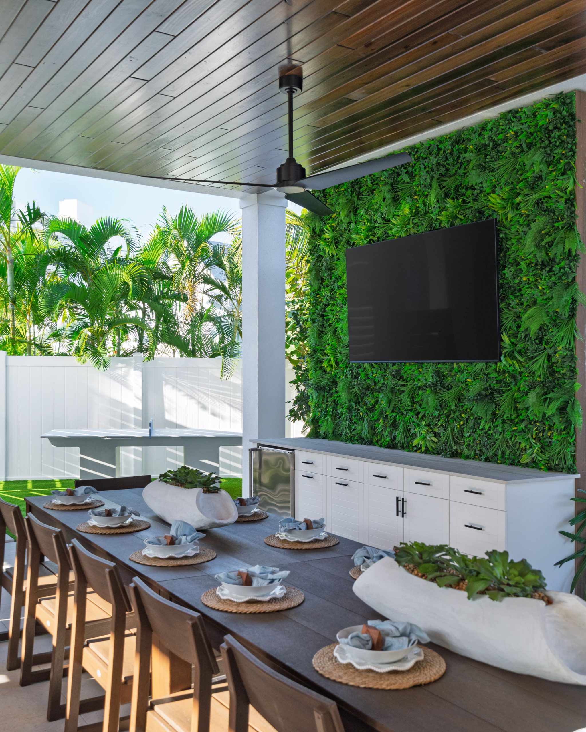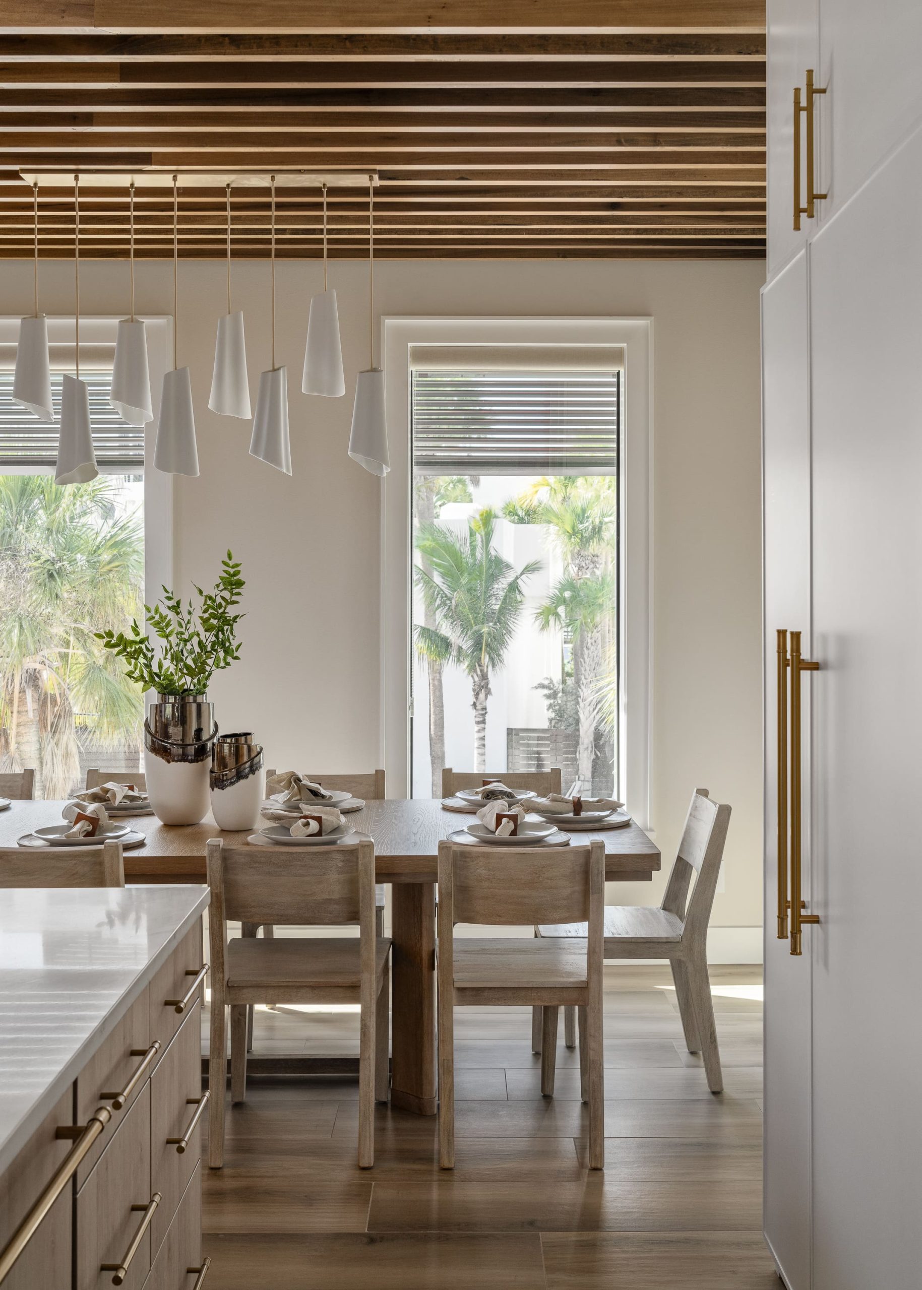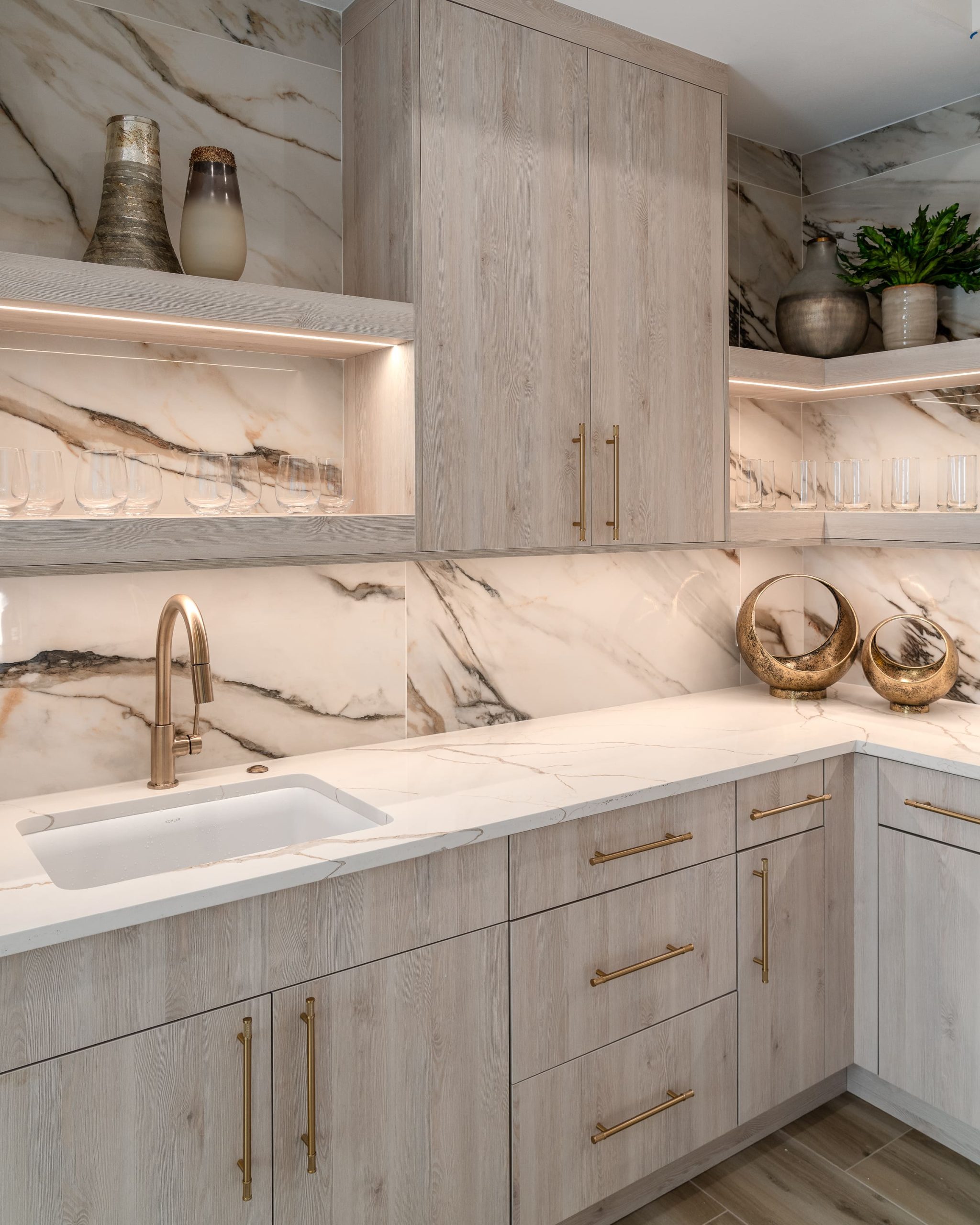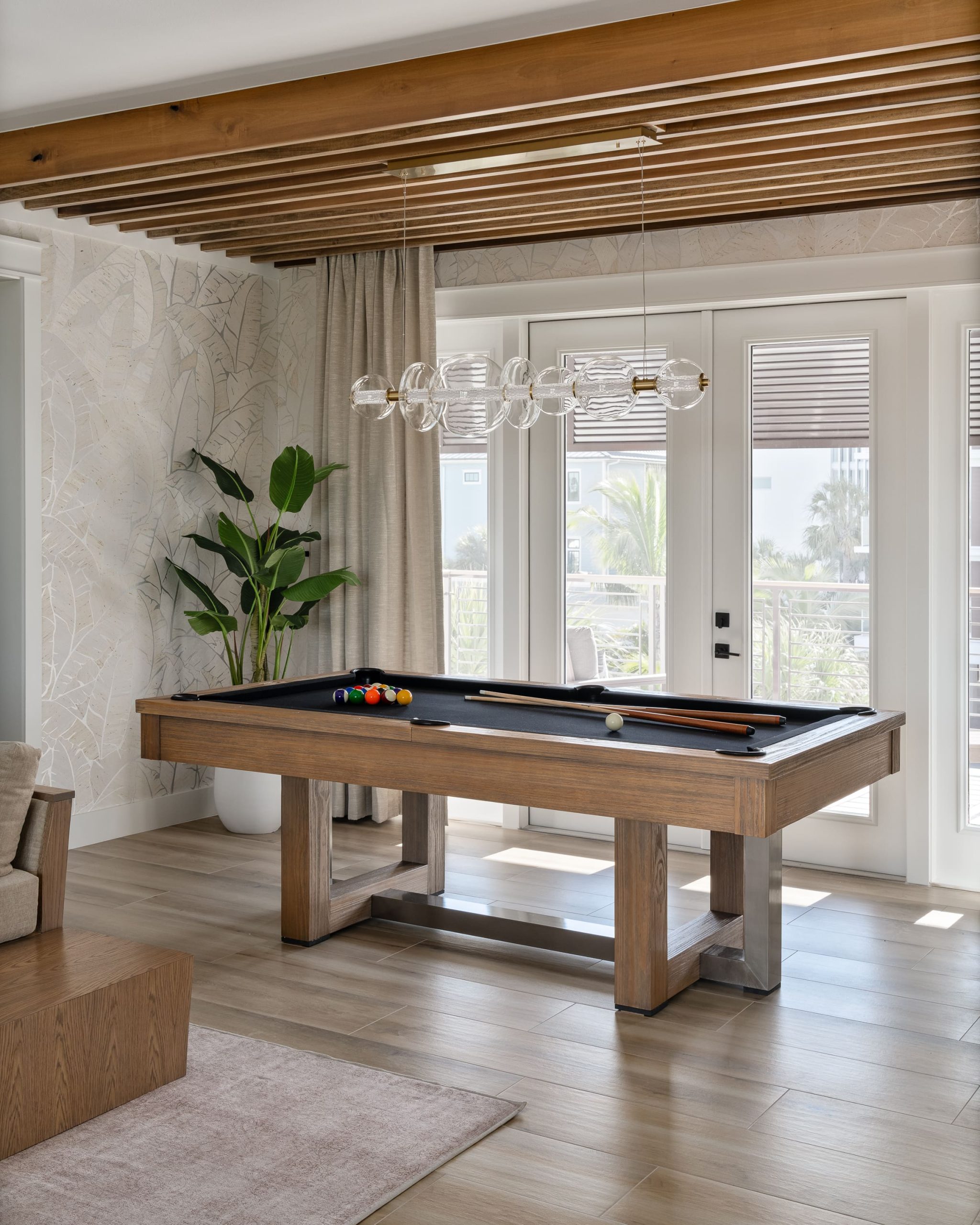 Inspired by the glow of the setting sun, The Overlook is shaped by warmth, artistry, and refined simplicity. Bright whites form a crisp foundation, layered with a warm, organic palette enriched by golden hues that echo the surrounding landscape. Brass hardware and detailing add subtle luminosity, while artisan tile and patterned mural wallcoverings introduce moments of texture and visual storytelling. Streamlined forms keep the interiors feeling clean and composed, allowing light and material to take center stage. Designed to blur the boundary between indoors and out, the home unfolds as a welcoming coastal retreat—one that fully embraces the warmth and ease of sunset living.